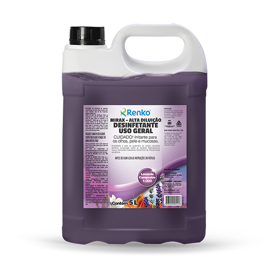 Nesta versão, o MIRAX AD deve ser diluído em água antes do seu uso, com um tempo de contato de até 10 minutos, sobre a superfície a ser limpa e se necessário passe um pano úmido para retirada do excesso de produto. É indicado para desinfecção de superfícies contaminadas como pisos em geral, ralos, vasos sanitários, latas de lixo, maçanetas, telefones, balcões.