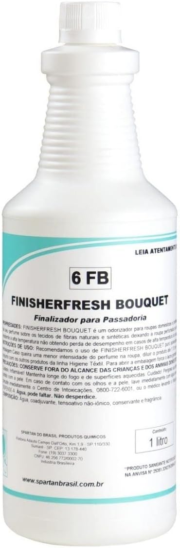O Finisher Fresh BOUQUET Finalizador um odorizador para tecidos e ambientes. Formulado com matérias primas de última geração, fixa seu perfume sobre os tecidos de fibras naturais e sintéticas deixando os tecidos perfumados por dias. Possui uma fragrância resistente alta temperatura não obtendo perda de desempenho em casos de alta temperatura. Como Usar: Recomendamos o uso de FINISHERFRESH BOUQUET puro pulverizando sobre o tecido, ou dentro do saco plástico de embalagem. Caso queira uma menor intensidade do perfume na roupa, diluir o produto até 1:10 em água. FINISHERFRESH BOUQUET deve ser utilizado em conjunto com outros produtos da Linha Higiene Têxtil.
